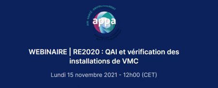 APPA – CD2E : webinaire « RE2020 : QAI et vérification des installations de VMC » (15/11/2021)